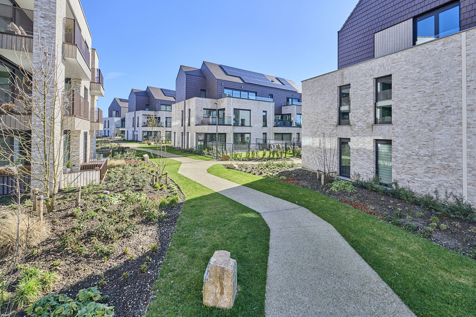 Er zijn ook 5 Walwoningen die het project ontsluiten met elk hun specificaties. De oppervlaktes lopen van 78 tot 135m² met terrassen van 10 tot 56m². Gelijkvloerse appartementen beschikken over een tuin van 44 tot 116m². Deze walwoningen beschikken over één-, twee- of drieslaapkamerappartementen.