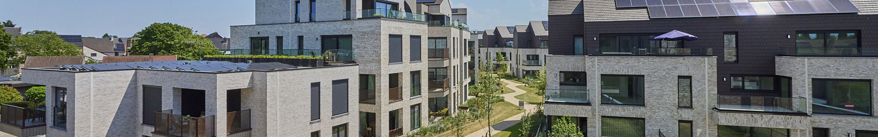 Er zijn ook 5 Walwoningen die het project ontsluiten met elk hun specificaties. De oppervlaktes lopen van 78 tot 135m² met terrassen van 10 tot 56m². Gelijkvloerse appartementen beschikken over een tuin van 44 tot 116m². Deze walwoningen beschikken over één-, twee- of drieslaapkamerappartementen.