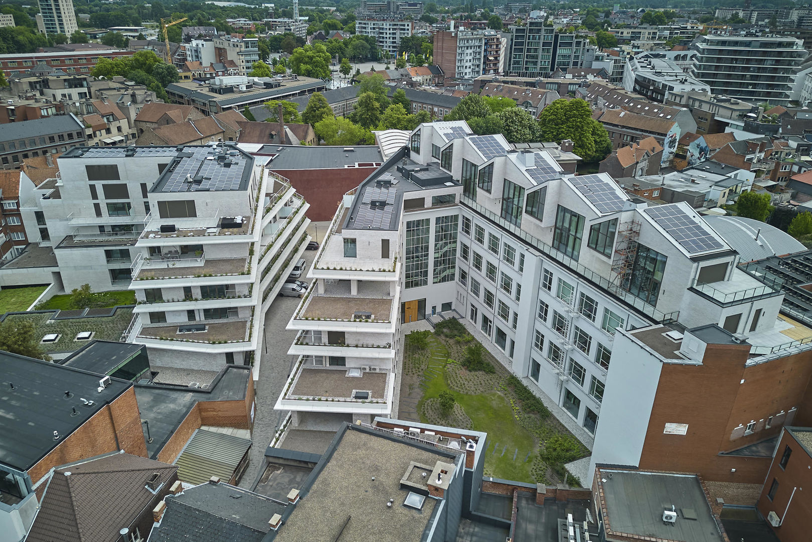 Tussen de gebouwen van De Bonnefant is een groene doorsteek gecreëerd die de Demerstraat rechtstreeks verbindt met het begijnhof. Gezellig vertoeven in één van de twee gemeenschappelijke binnentuinen of liever een barbecue met de buren? Bovendien hebben de terrassen geïntegreerde plantenbakken die zijn uitgerust met een automatisch beregeningssysteem. Een extra groene beleving is verzekerd.